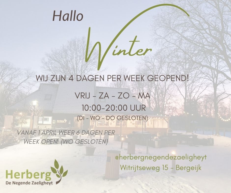 WINTER openingstijden 29 nov ’25 t/m 31 mrt ’26