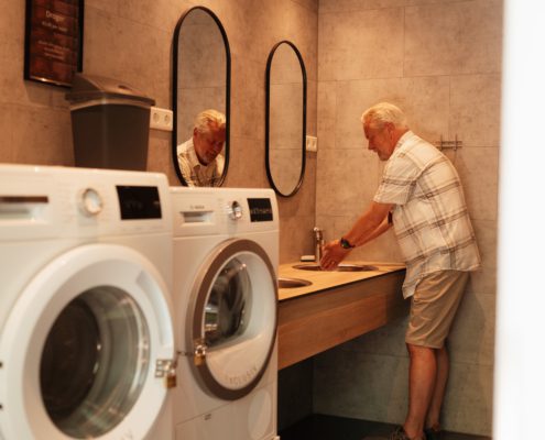 - Douche en toilet in toiletgebouw, bij toiletgebouw buitenkranen en lozen chemisch toilet.